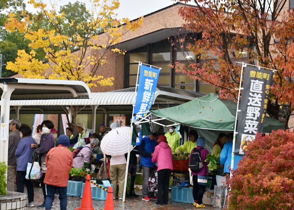 文化祭、恒例の新鮮で安い野菜市です。10時販売開始の1時間ぐらい前から大勢の人が雨の中、並んでいました。